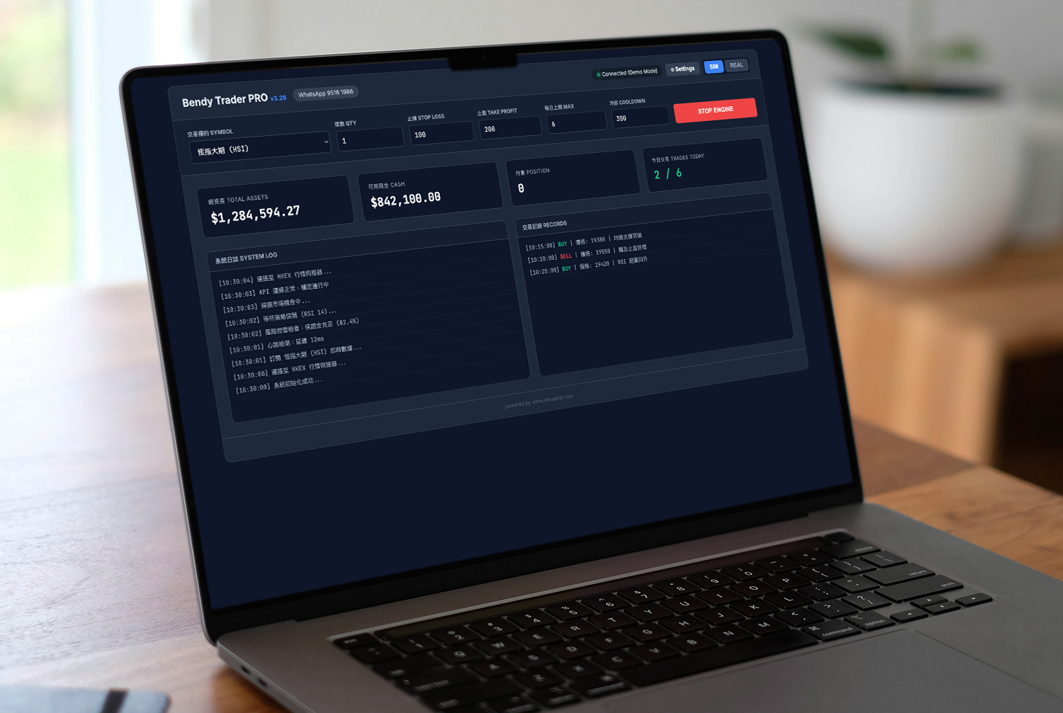 - Real-Time Monitoring Dashboard: Built a responsive, professional Web UI that streams live market data, P&L updates, and trade logs. The interface is optimized for both desktop and mobile devices.